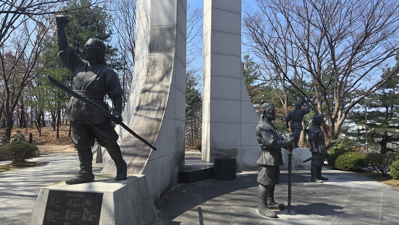 대전광역시 서구 탄방동 일대로 추정되며, 남선근린공원에망이.망소이 난 기념탑