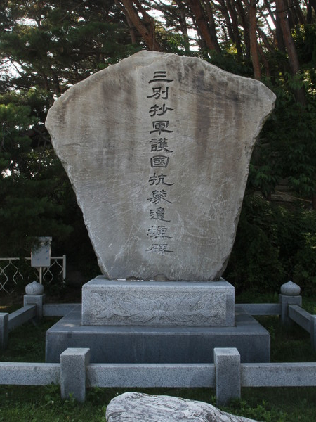 モンゴル侵略に対する三別抄の抗争を称え、江華郡民たちが1993年に建てた。 抗争碑の前には「三別抄軍護国抗夢遺虚碑」と書かれている。 裏面には碑石を立てた趣旨が記されている。
