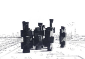 万博以降、丹下健三を始めとするメタボリズムの建築家たちは海外での活躍の場を広げていきます。彼らはそこで、メタボ リズムの思想をさまざまな形で実践していきました。ここでは丹下健三によるマケドニアの首都の震災復興計画《スコピエ都心部再建計画》、槇文彦の《リパブ リック・ポリテクニック》など、都市のスケールで展開された大型プロジェクトを紹介します。未完、進行中のものも含め、世界、とくにアジアでの都市の発展 にメタボリズムがどのように寄与したのかを検証します。