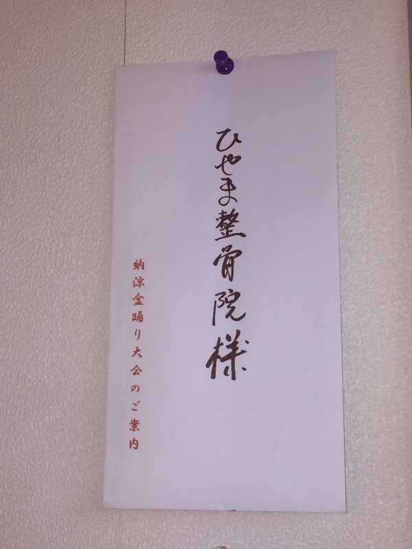当院、松戸二十世紀が丘ひやま整骨院も微力ながら盆踊り大会へ毎年寄付させていただいております。