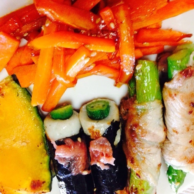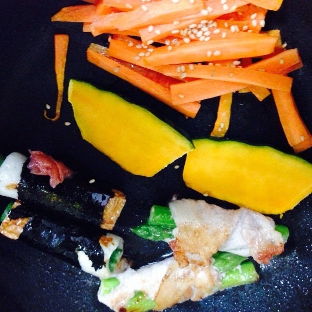 ある日のお弁当工程 人参きんびらアスパラ肉巻きちくわおくらかぼちゃのサラダエレガンス金時豆 詳しい作り方 01 大概、こんな感じで一気につくり 02 順番にさらにあげていくか 03 お弁当にそのままいれていきます ぶしぶしさんのお料理をもっと見る