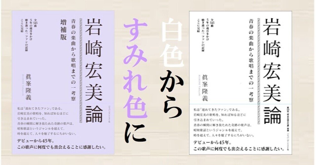 【追伸】私がこのブログを書こうと思うキッカケを与えてくださった眞峯隆義氏の『岩崎宏美論』の増補版がこの2月16日に刊行された。何と価格も値下げされた。初版本をお持ちでない方は是非この機にご購入を検討されてはいかがだろうか。すでにお持ちの方は、30%オフのクーポンがもらえるらしい。今回の表紙は「すみれ色」である。🥰
