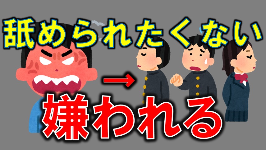 中学校では、入学直後に臆病な態度を丸出しした故に目をつけられたとの反省がありました。