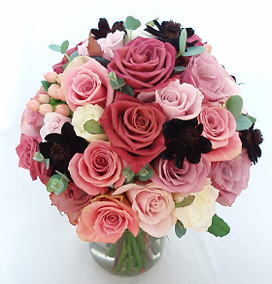 メインに使っている茶系のバラは「ショコラ」