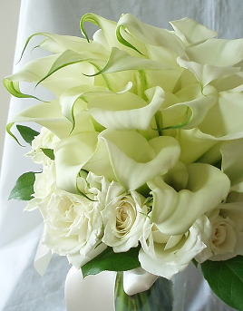 昨日UPしたブーケのお客様のお色直し用ブーケ。白いカラーの下に白バラをあしらった
