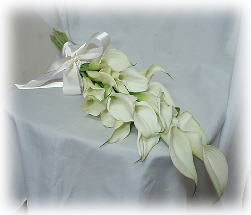 左の腕に載せて持つブーケです。