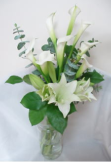 カラーの手元の方にはテッポウユリを。