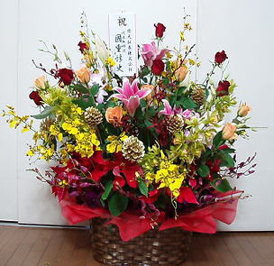 今日のアレンジは豪華です。ユリ以外は朝仕入れたので新鮮!