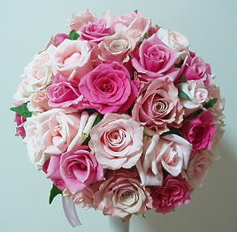 ピンクのくすんだバラや淡いバラ・濃いバラを合わせたブーケ。