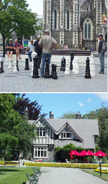 上の写真はクライストチャーチの中心にある大聖堂の前で大きなチェスをしてる人々。