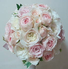 ふんわりした淡いピンクのバラで作りました。