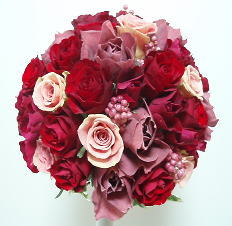 3色のバラを使ったラウンド(まん丸)ブーケ。
