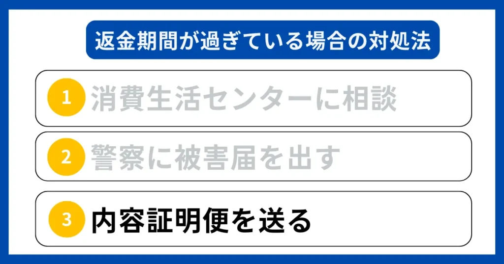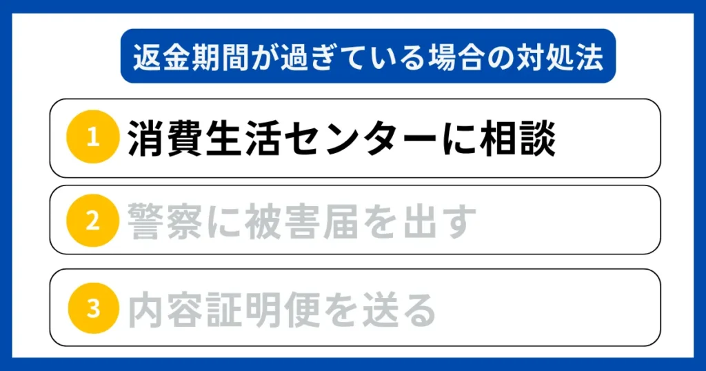 - 返金方法②:期間外なら、消費者生活センターに相談する