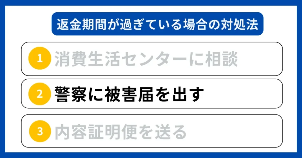 詐欺の疑いが濃厚であれば、警察に被害届けを出すのも一つの手です。