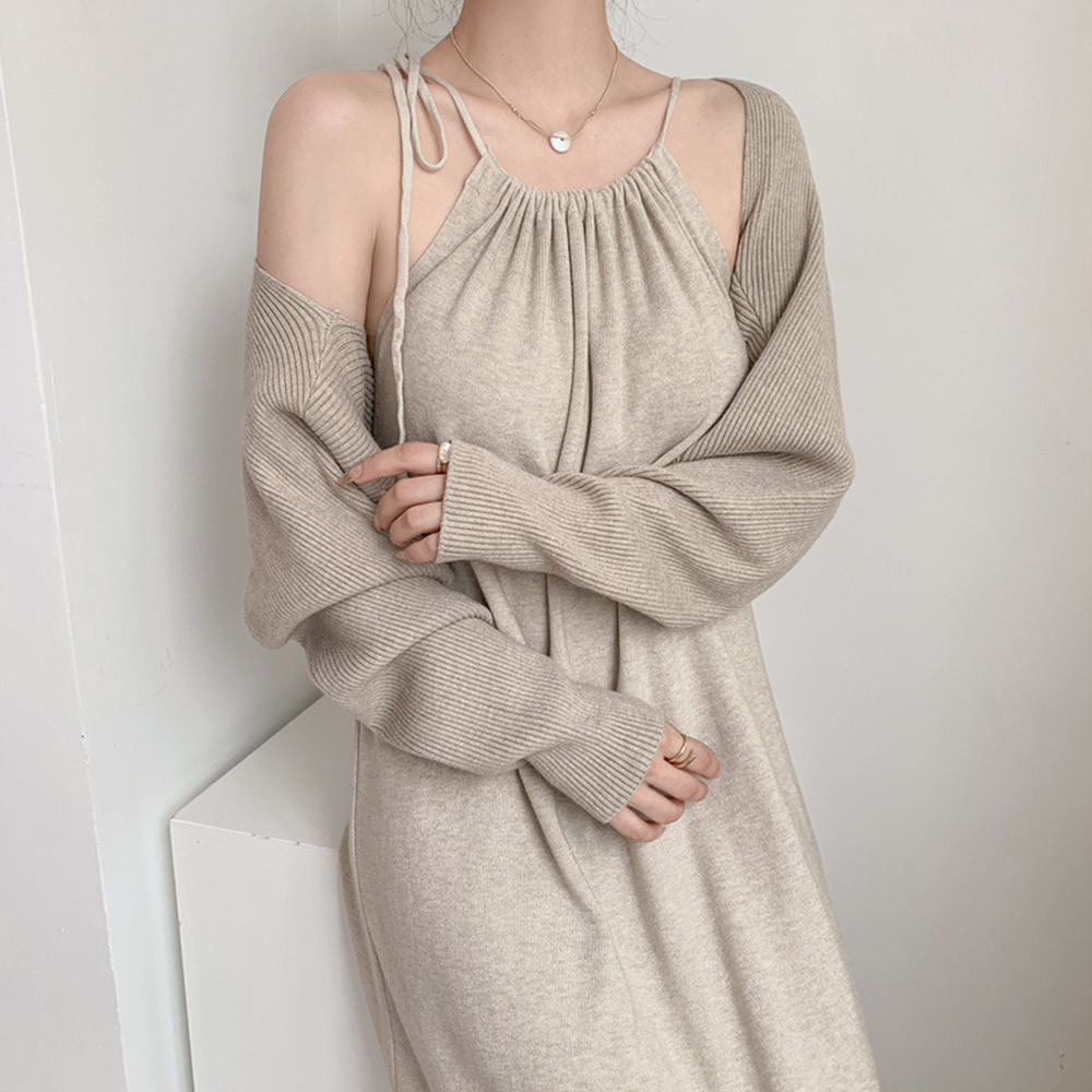 この2点セットの秋冬〜初春向けのワンピセットは黒とベージュを愛用。