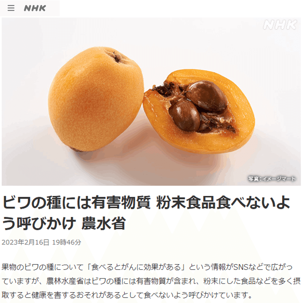 NHKだけでなく、民放でも「ビワの種は危険!」の宣伝に余念がない。