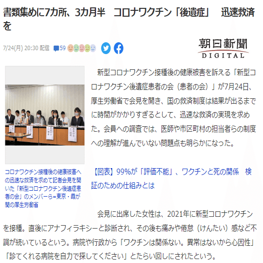 『後遺症患者の会』が厚労省で記者会見をして、それが堂々と大手メディアで報道されるようになった。