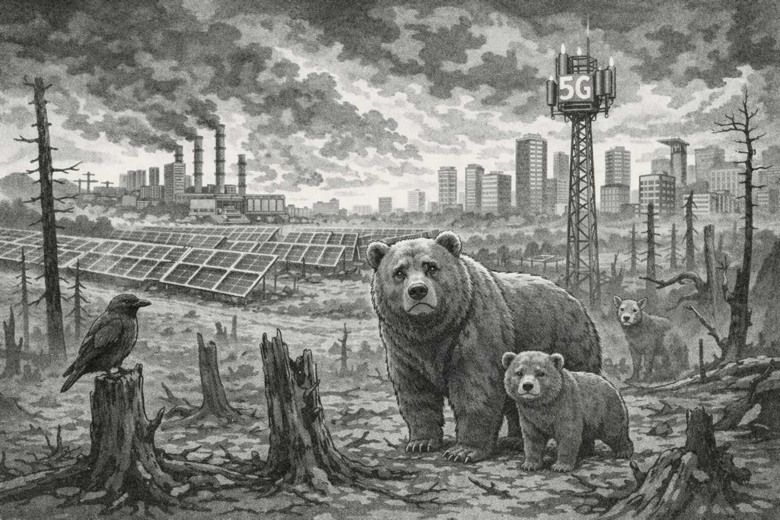 人間による生態系の変容が、これらの脅威をさらに増幅させています。都市化、5GやAIデータセンターの設置、太陽光パネルや風力発電による自然破壊、人工的な気候操作などの人間の活動によって生物多様性の喪失が起こっています。