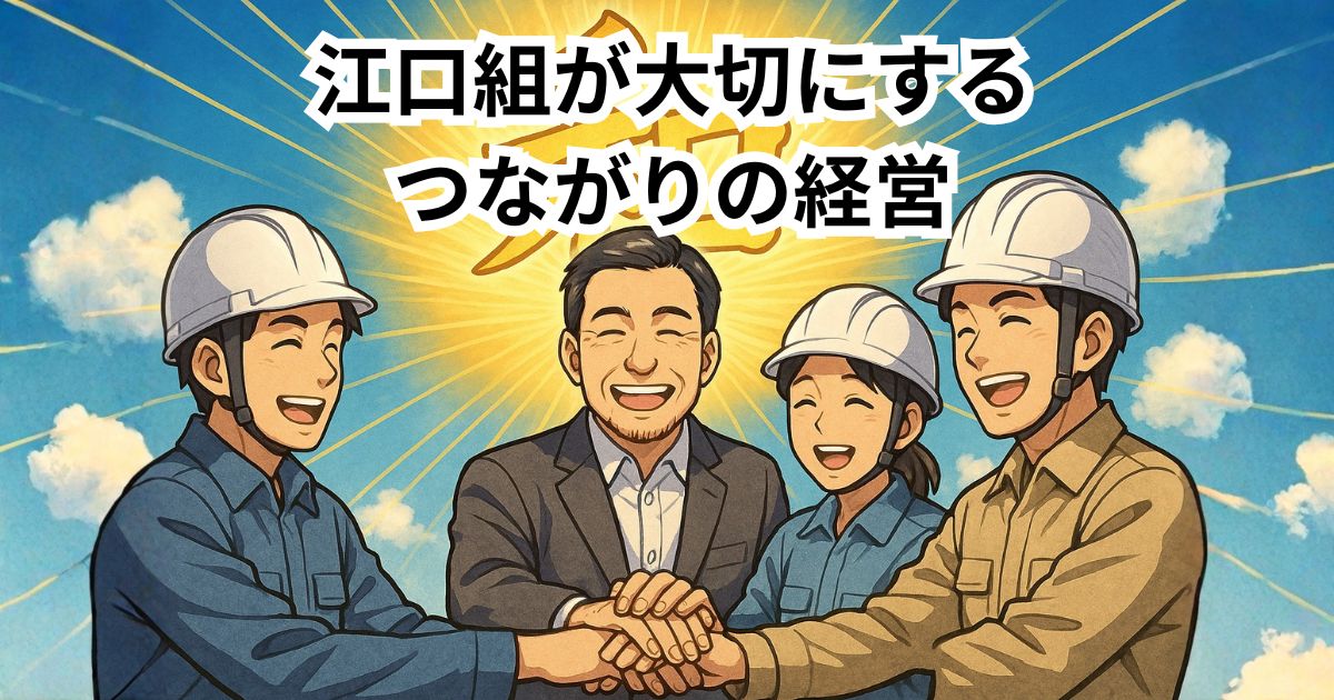 この理念は、まさに人と人とのつながりが会社の原動力であるという、江口組の魂の言葉なのです。