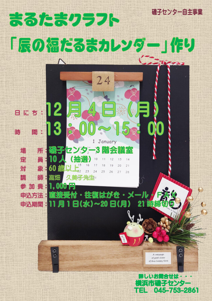 丸い木の玉を来年の干支「辰」のだるまに変身させて、一年中飾っていられるカレンダー付きの置物を作ります。