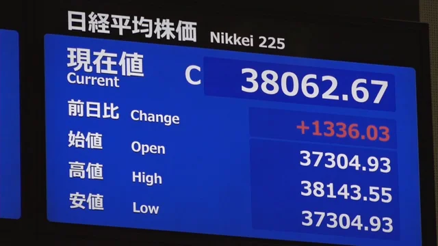 平均株価は15日に比べ1336円03銭高い3万8062円67銭で取引を終え、約2週間ぶりに3万8000円台を回復しました。