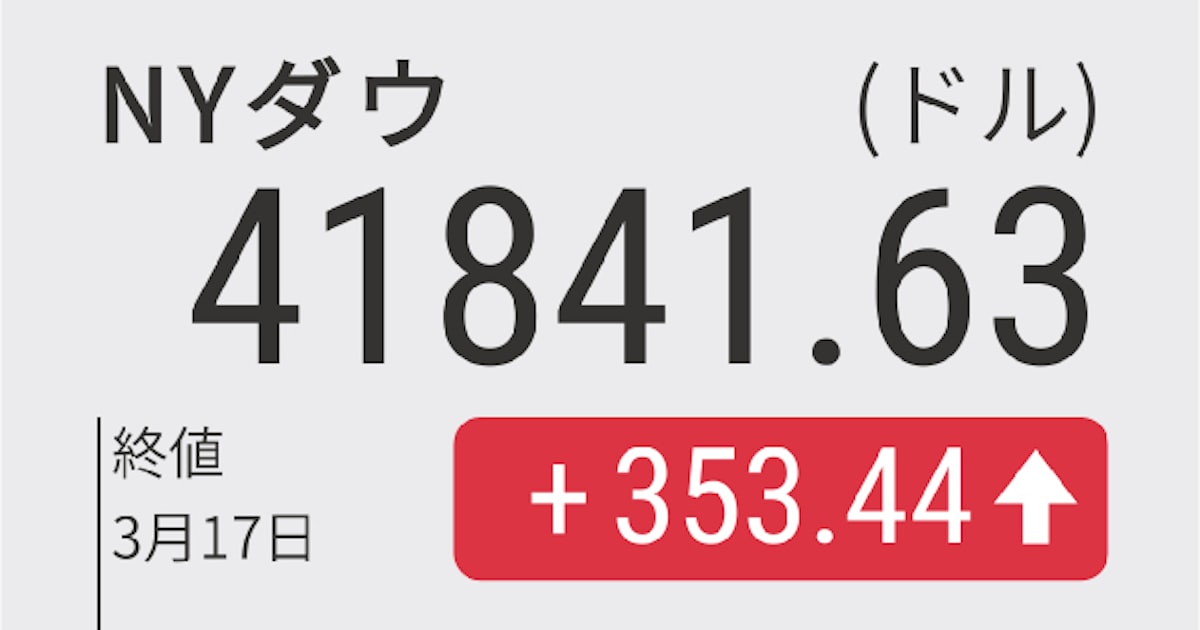 - NYダウ工業株30種(ドル)3/17 17:50 終値41,841.63+353.44(+0.85%)