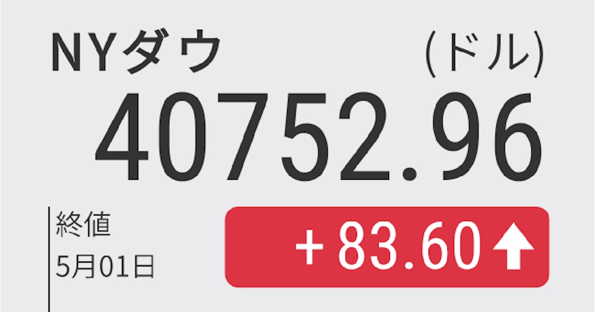 - NYダウ工業株30種(ドル)5/1 17:40 終値40,752.96+83.60(+0.20%)