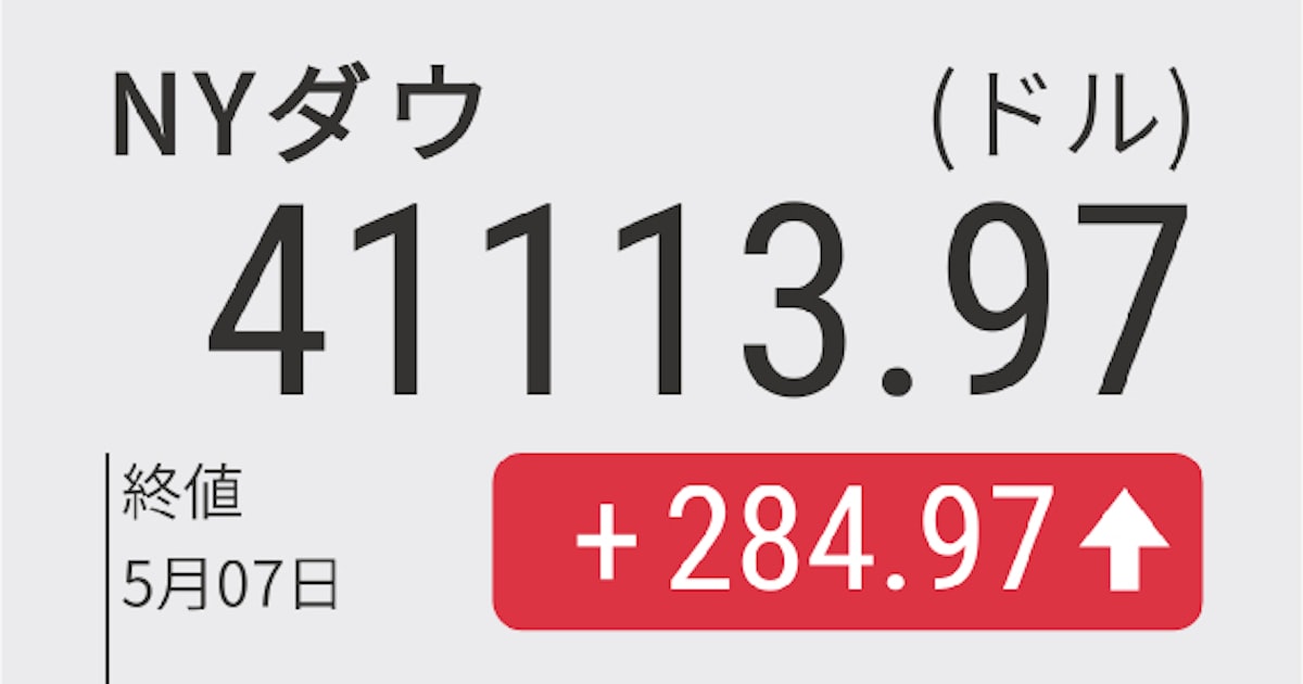 - NYダウ工業株30種(ドル)5/7 17:40 終値41,113.97+284.97(+0.69%)