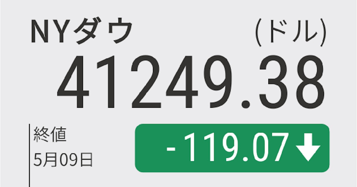 - NYダウ工業株30種(ドル)5/9 17:30 終値41,249.38-119.07(-0.28%)
