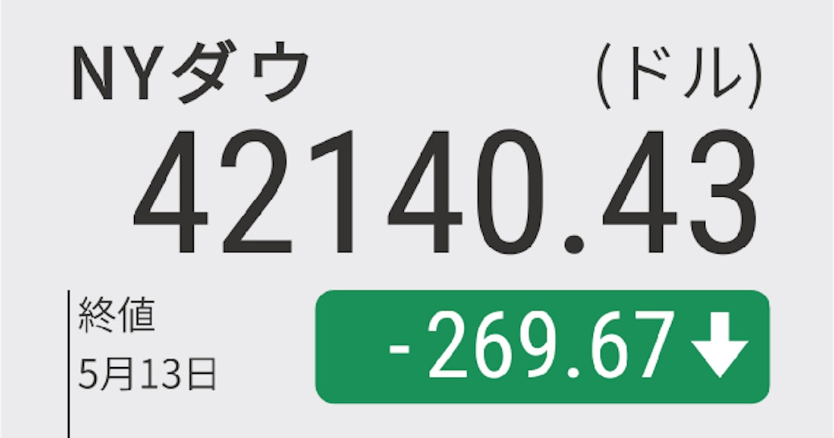- NYダウ工業株30種(ドル)5/13 16:5842,140.43-269.67(-0.63%)