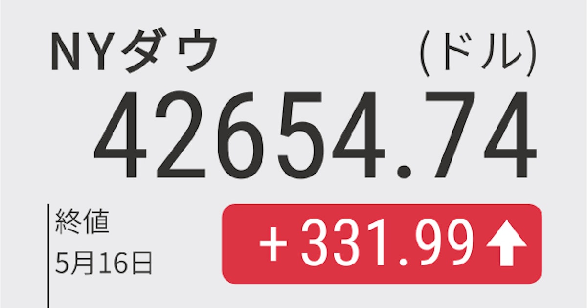 - NYダウ工業株30種(ドル)5/16 17:30 終値42,654.74+331.99(+0.78%)