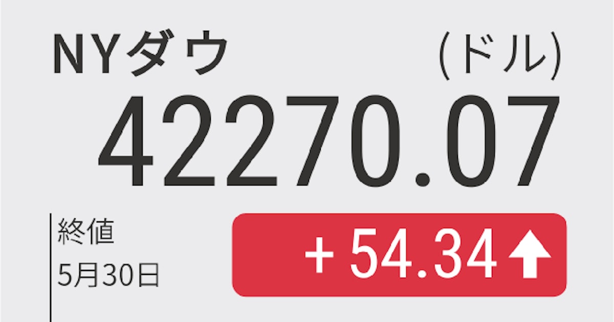 - NYダウ工業株30種(ドル)5/30 17:30 終値42,270.07+54.34(+0.12%)