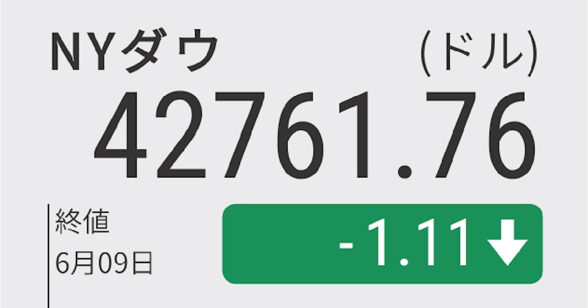 - NYダウ工業株30種(ドル)6/9 17:30 終値42,761.76-1.11(±0%)