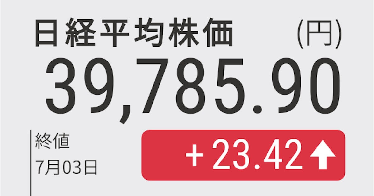 - 日経平均(円)7/3 15:45 大引39,785.90+23.42(+0.06%)