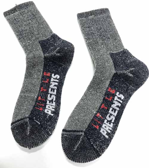 インナーはヒートテック上下3枚ずつ、お腹と背中にホカロン、靴下は安定の、