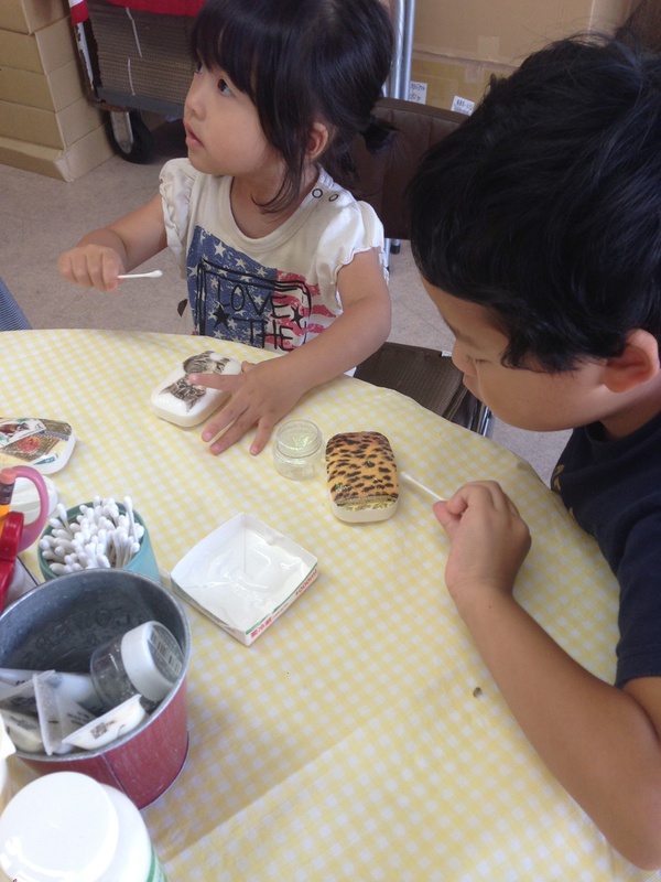 子どもは、みぃさんの石けんのデコパージュを体験しました♪