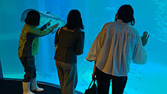 入ってすぐのトンネル型の水槽、アクアゲート。