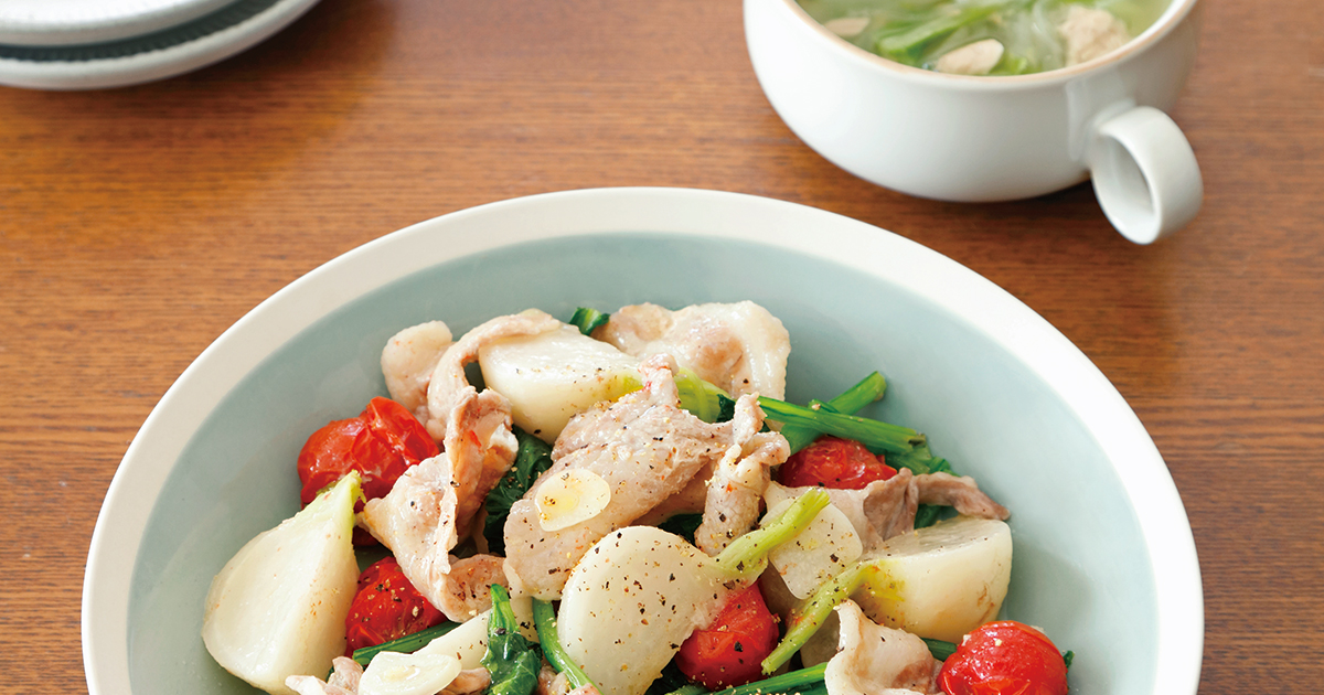 豚バラ肉とかぶのガーリック蒸し