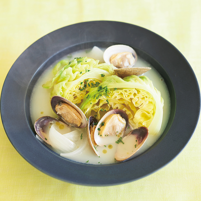 早春キャベツとあさりの豆乳スープ