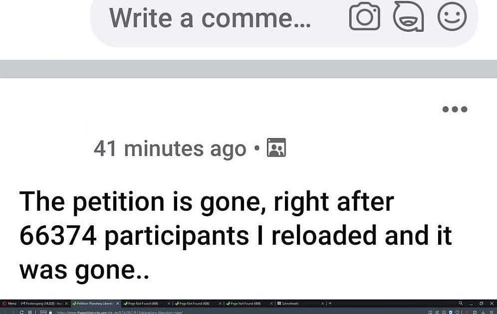 地球解放請願署名サイトが説明もないまま今朝急に撤去されました。