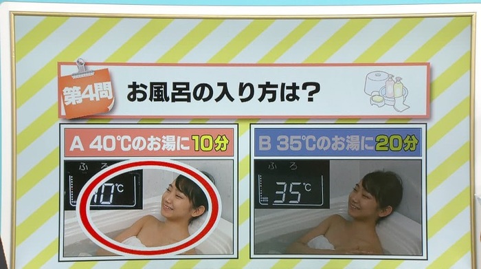 A:40度のお湯に10分つかる、B:35度のお湯に20分つかる
