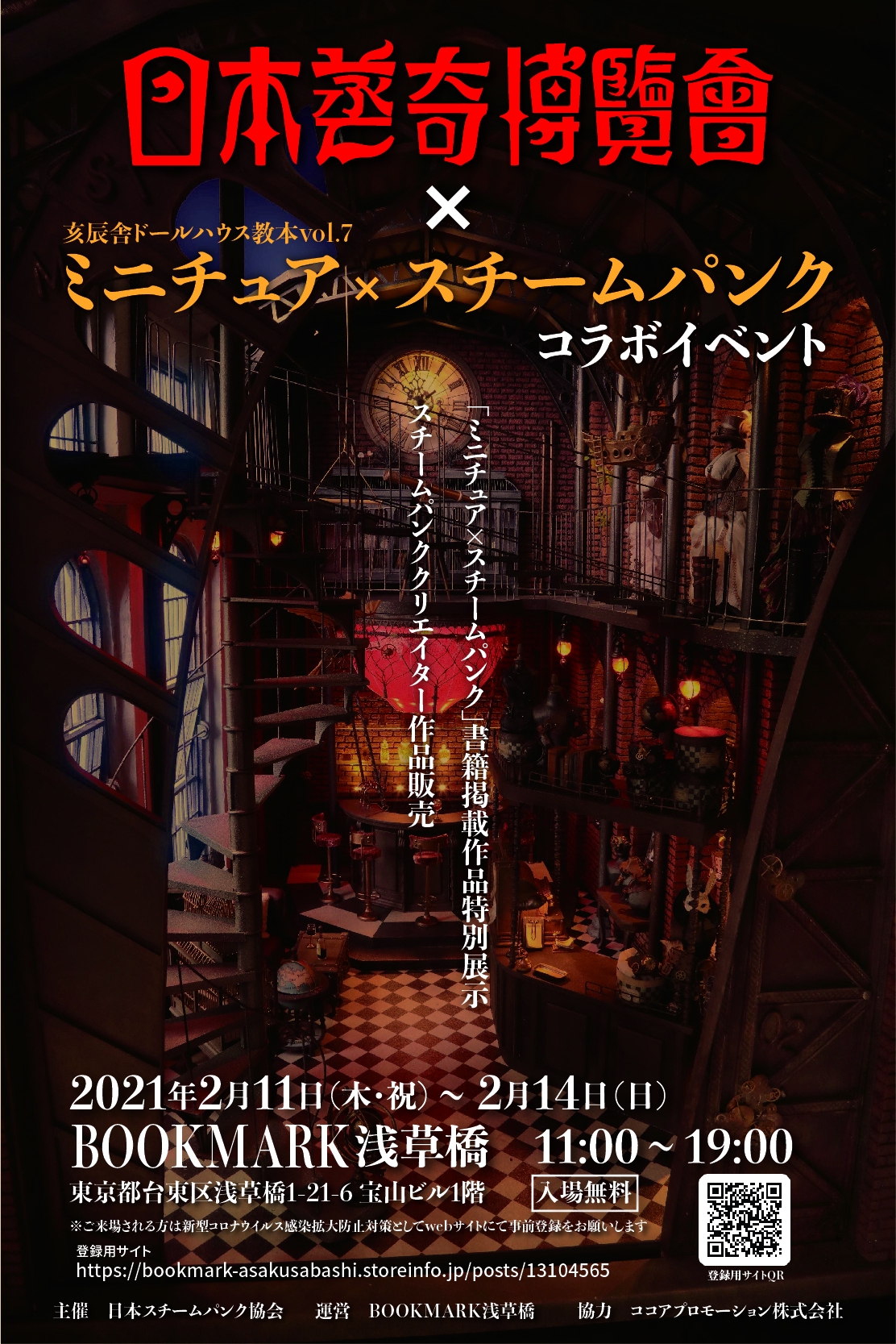 明日2/11日(木・祝)から2/14日(日)まで当社オフィス1階のブックマーク浅草橋にて「日本蒸奇博覧会 × 亥辰舎 新刊ドールハウス教本vol,7『ミニチュア×スチームパンク』コラボイベント」 を開催します。