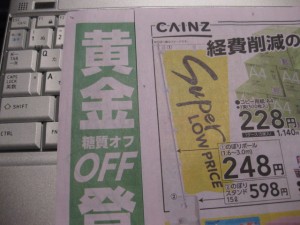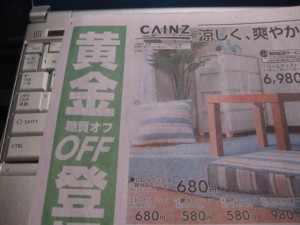 今週の水曜日の新聞折込チラシから。水曜日と言えば、ホームセンターのカインズのチラシが入る日です。今日は、同業のコーナンのチラシも入っていました。毎週水曜のカインズに対して、コーナンは隔週水曜なのかもしれません。