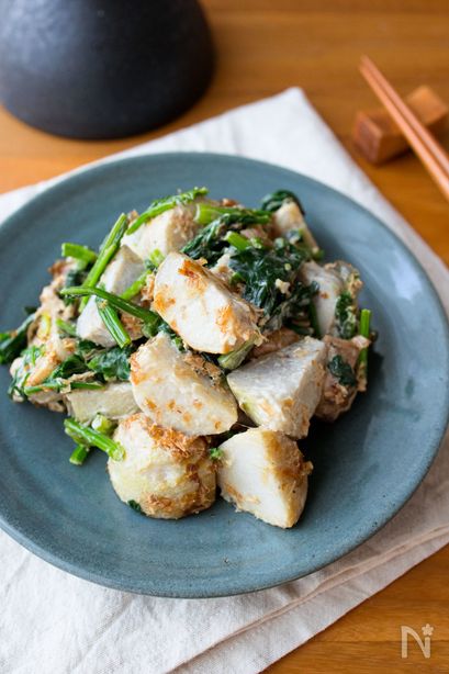 里芋とほうれん草のおかかマヨ和え。
