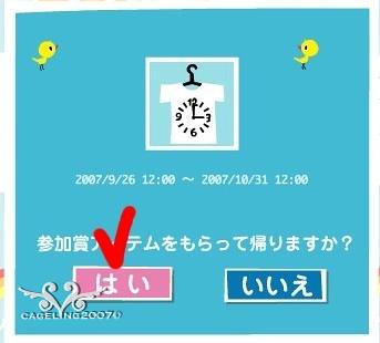 4. 按下【閉じる】(關閉)就算領取到參加獎的T-shirt時鐘囉!