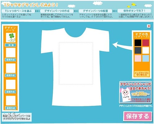 1. 首先按下徵選頁面中央的【まずはデザインしてみよう】,會連到下方的空白T-shirt設計頁面: