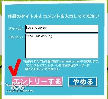 13. 替自己的作品取個名字,以及加上註解,填寫完畢後按下【エントリーする】(確定參加):