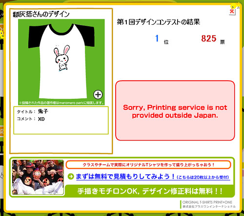 公告文章在這裡:Tシャツショップ デザインコンテスト結果発表!
