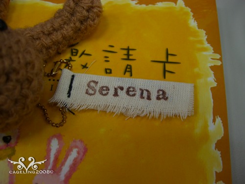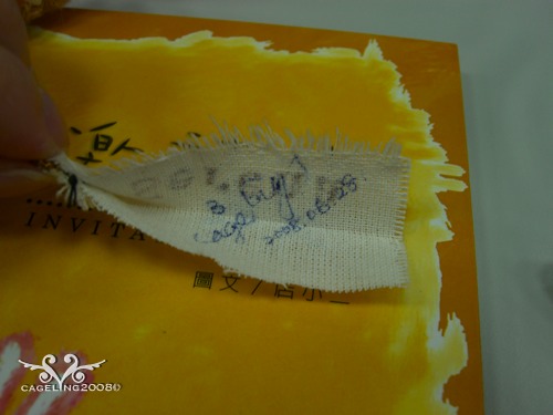 特製的專屬標籤,後來發現應該用咖啡色或是米色縫才對啊,我真是超白癡的: