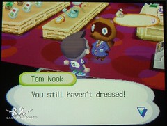 如果你沒有穿上就繼續跟他說話的話,他會很堅持的告訴你要穿上,並且告訴你穿衣服的辦法XD